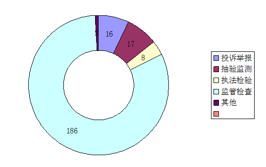 从案件来源看,投诉举报16件,抽检监测17件,执法检验8件,监管和专项检查186件,其他部门通报0件,其他2件。