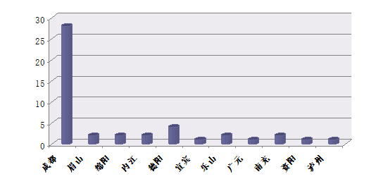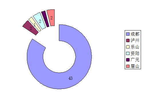 2017年三季度,全省共有化妆品生产企业51家,按市州细分为成都43家、泸州2家、乐山1家、资阳2家、广元1家、眉山2家。
